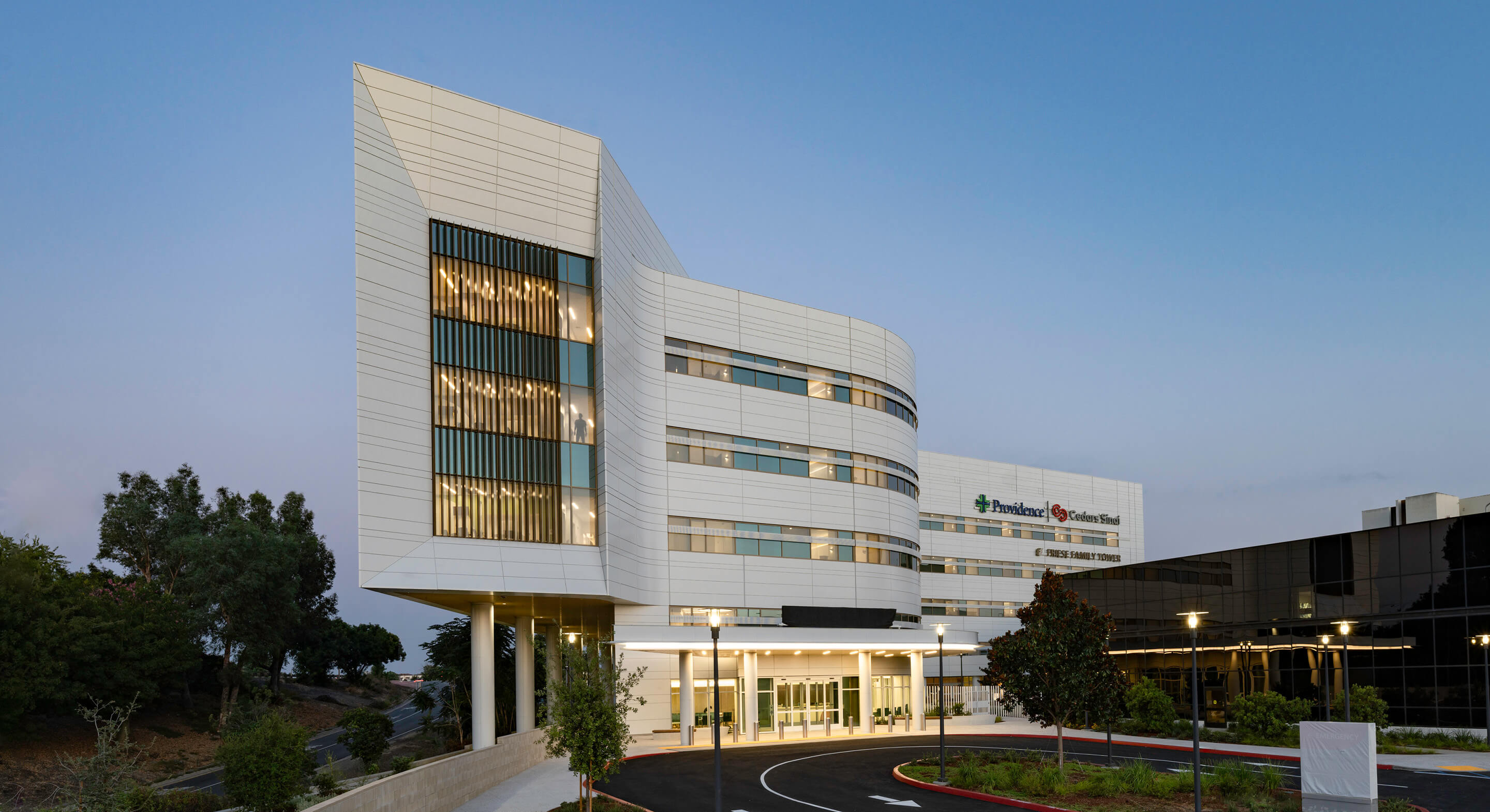 The Friese Family Tower at Providence Cedars-Sinai Tarzana Medical Center embodies the principles of calm and comfort, with the aim of enhancing patient care and well-being. The design prioritizes a serene and welcoming environment throughout, leveraging blue and green tones, a central healing garden, and local artwork. Each patient room features recliners and sleeper sofas, ensuring comfort for patients and their families.