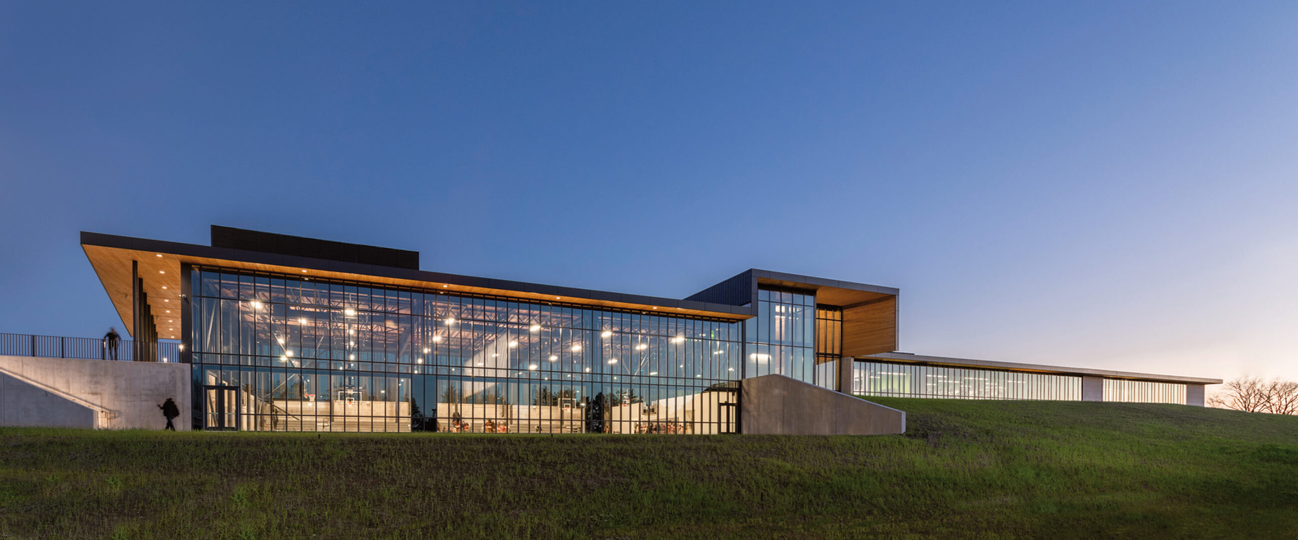 Translating nature, the tree canopy is abstracted to an undulating overhead plane, framing views, revealing the activities inside, and allowing the natural terrain to visually flow through the building.